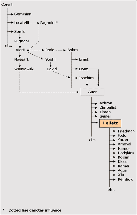 Heifetz's artistic lineage and legacy Hover mouse over a name |